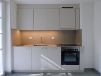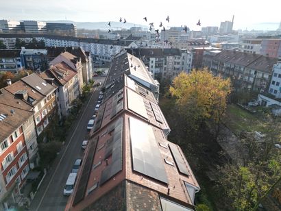 Die 2-Zimmer-Altbauwohnungen im Klybeckquartier haben neue Einbauküchen erhalten – und auf den Dächern produzieren wir nun Strom zum Eigenverbrauch.