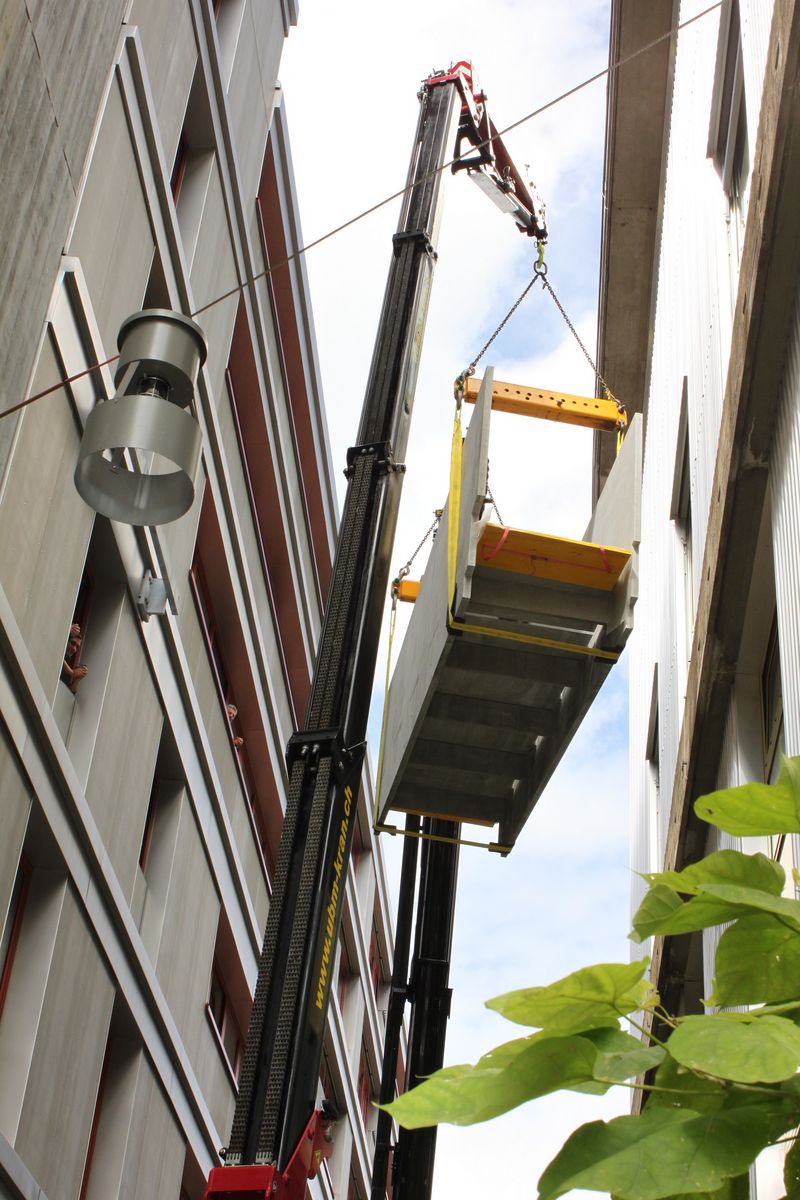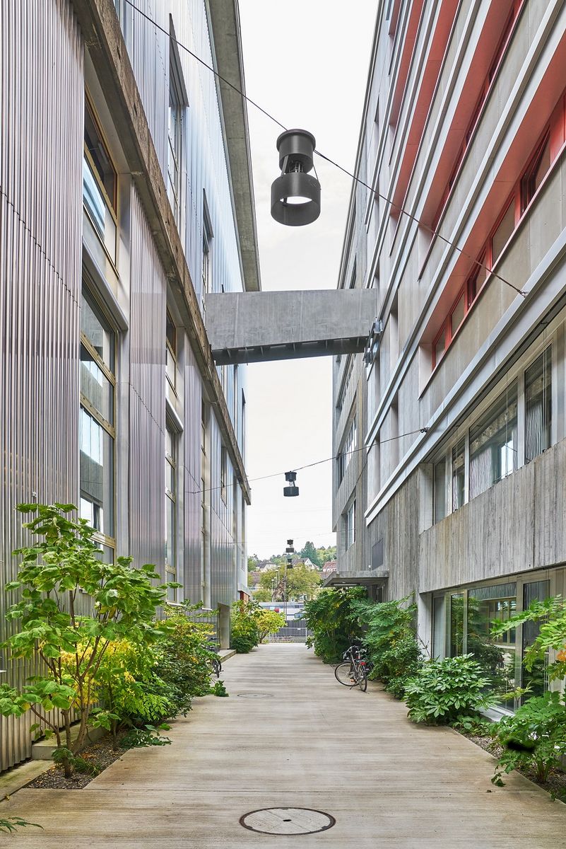Auf dem Lagerplatz in Winterthur verbindet seit kurzem eine Passerelle auf 22m Höhe die Mensa im Altbau der Architekturfakultät mit dem Neubau, in welchem sich die Bauingenieurfakultät befindet.