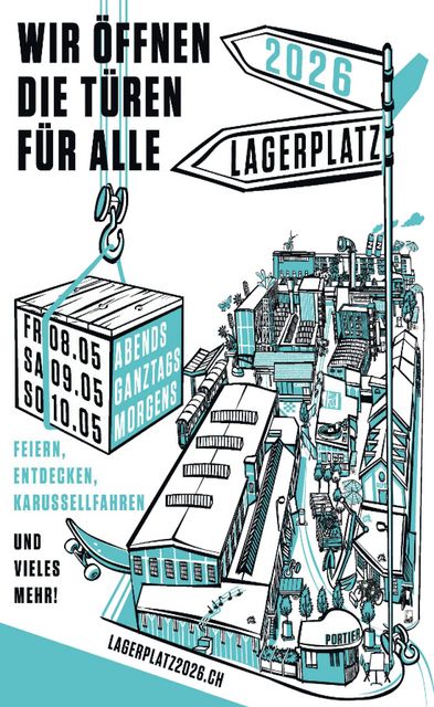 Vom 8. bis 10. Mai 2026 finden auf dem Lagerplatz Winterthur die Tage der offenen Türen statt. Ab Freitag, 16.00 Uhr, wird auf dem Areal gefeiert, diskutiert, präsentiert und die Vielfalt des Lagerplatzes sichtbar gemacht. Organisiert wird der Anlass vom ArealVerein Lagerplatz.