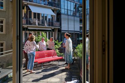 Il y avait déjà un parasol, mais il y a désormais enfin des sièges adaptés : un banc confortable rouge vif qui offre un nouveau havre de paix aux collaboratrices. La cour intérieure de la Klybeckstrasse à Bâle devient ainsi un lieu de pause accueillant où l'on peut reprendre des forces pendant les accouchements ou simplement profiter du soleil et échanger.